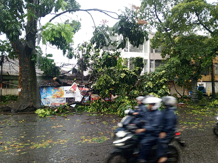 Selain pohon tumbang, dua kejadian baliho atau pylon sign roboh juga terjadi, masing-masing di Jalan Purnawarman (depan BEC) pada pukul 14.09 WIB dan di kawasan SPBU Cibolerang pada pukul 14.45 WIB.