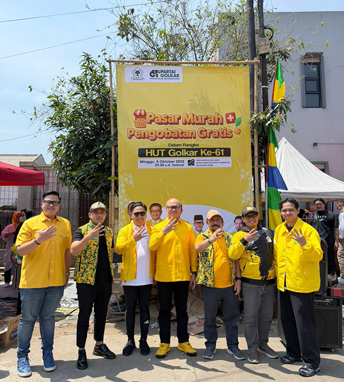 BANDUNG, journalbroadcast.co — Memperingati Hari Ulang Tahun (HUT) ke-61 Partai Golkar, Dewan Pimpinan Daerah (DPD) Partai Golkar Kota Bandung menggelar pasar murah serta pengobatan gratis di Kelurahan Cigereleng, Kecamatan Regol pada 5 Oktober silam.