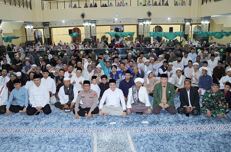 Kegiatan tersebut dihadiri unsur Forkopimda, perangkat daerah, instansi vertikal, ulama, pimpinan pondok pesantren, serta berbagai unsur masyarakat. Peringatan berlangsung khidmat dengan rangkaian acara keagamaan yang diikuti para jamaah dengan penuh kekhusyukan.